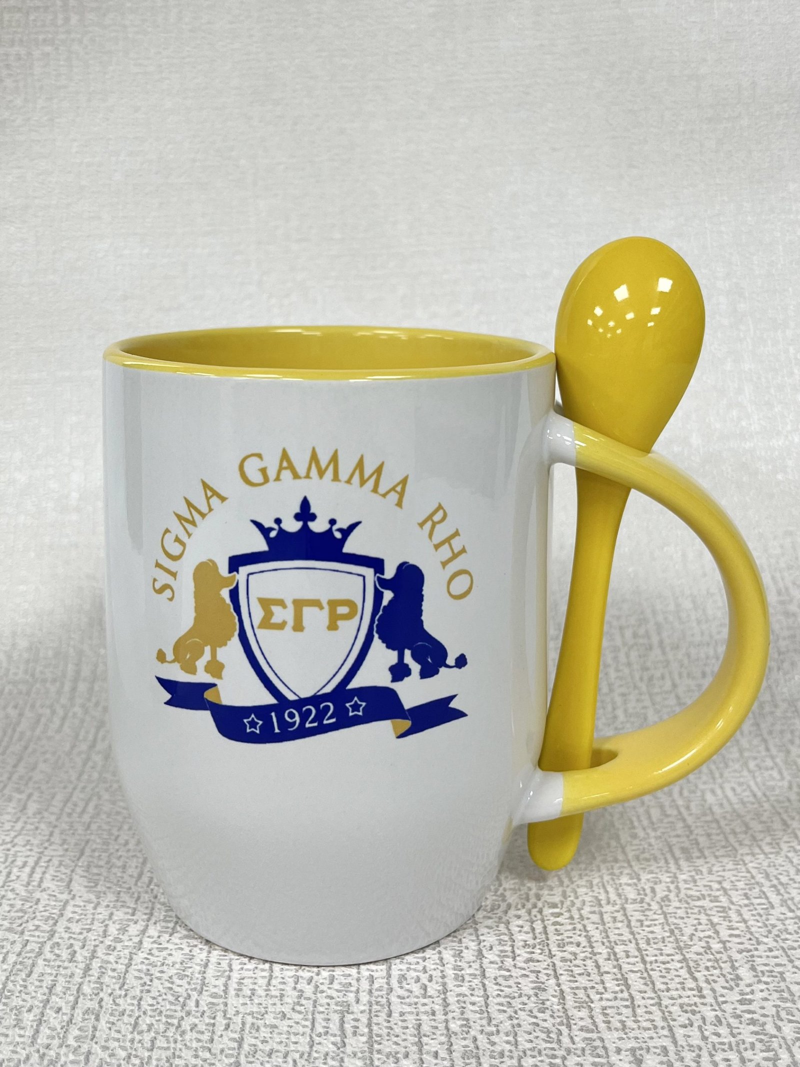 This 12oz mug comes with a spoon of the same color. It is durable enough to serve coffee, juice, tea, wine, and other beverages, making it suitable for daily use in the home and office while adding a touch of elegance to your beverage experience. The spoon can be inserted into the handle, creating a neat overall appearance. You can choose to represent your sorority or purchase as a gift for your Soror’s.